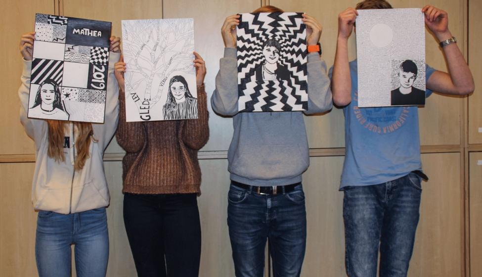 10. trinn har tegnet videre på sine linosnitt. Foto: Tonje Røyset Jørgensen