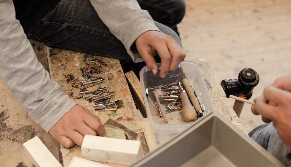 Sliping av skjæreverktøy til linosnitt, 6. trinn, Bygdøy skole. Foto: Bibbi Omtveit / Kunst og design i skolen