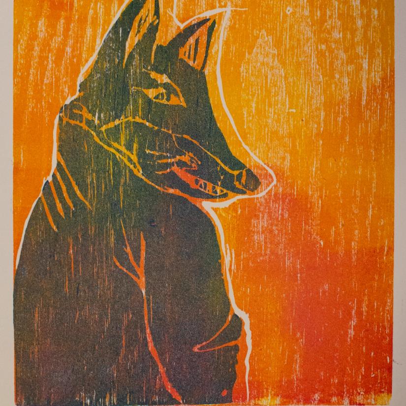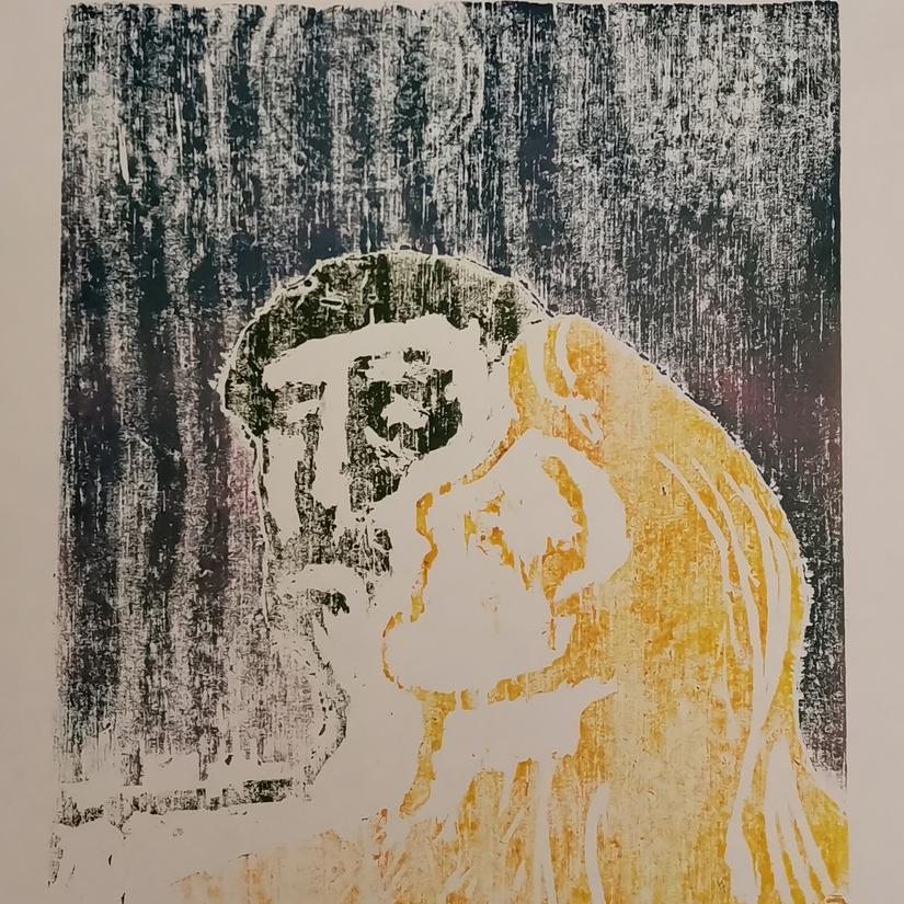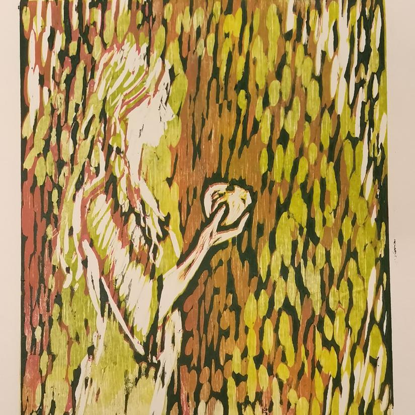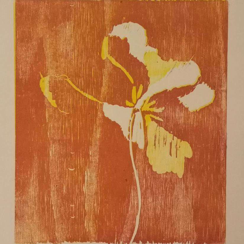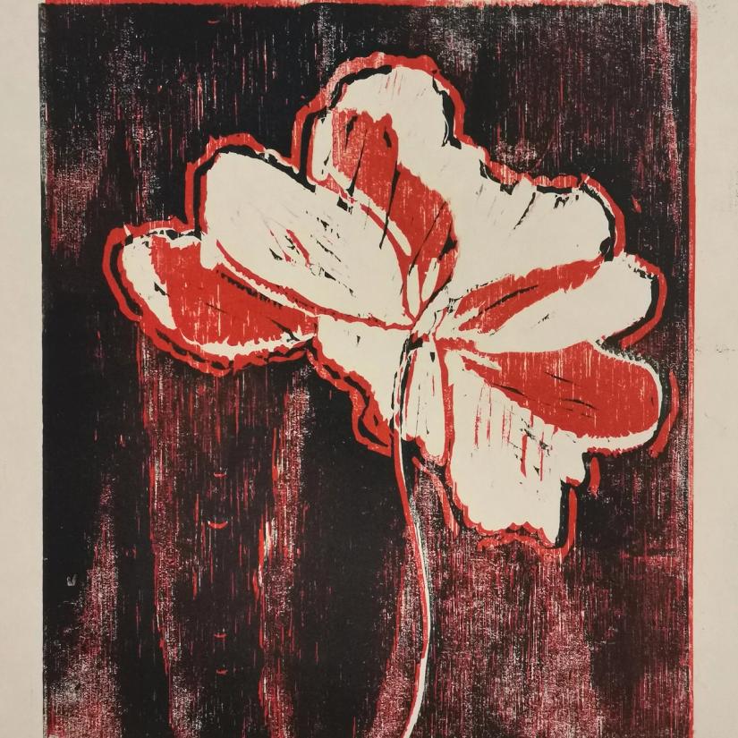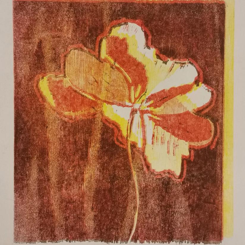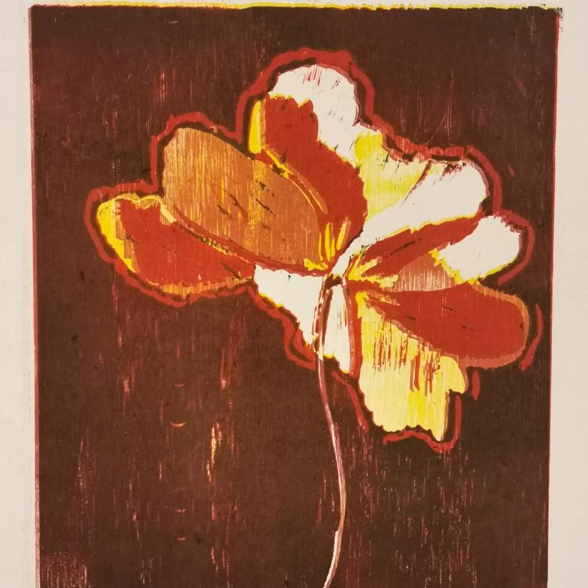 Bildene over viser eksempler på reduksjonstrykk. Det er viktig å trykke på alle de tidligere trykkene, fordi du kan ikke gå tilbake når du jobber videre på platen. Til slutt ender du opp med kun kontur eller små felt som egner seg til en mørk farge.