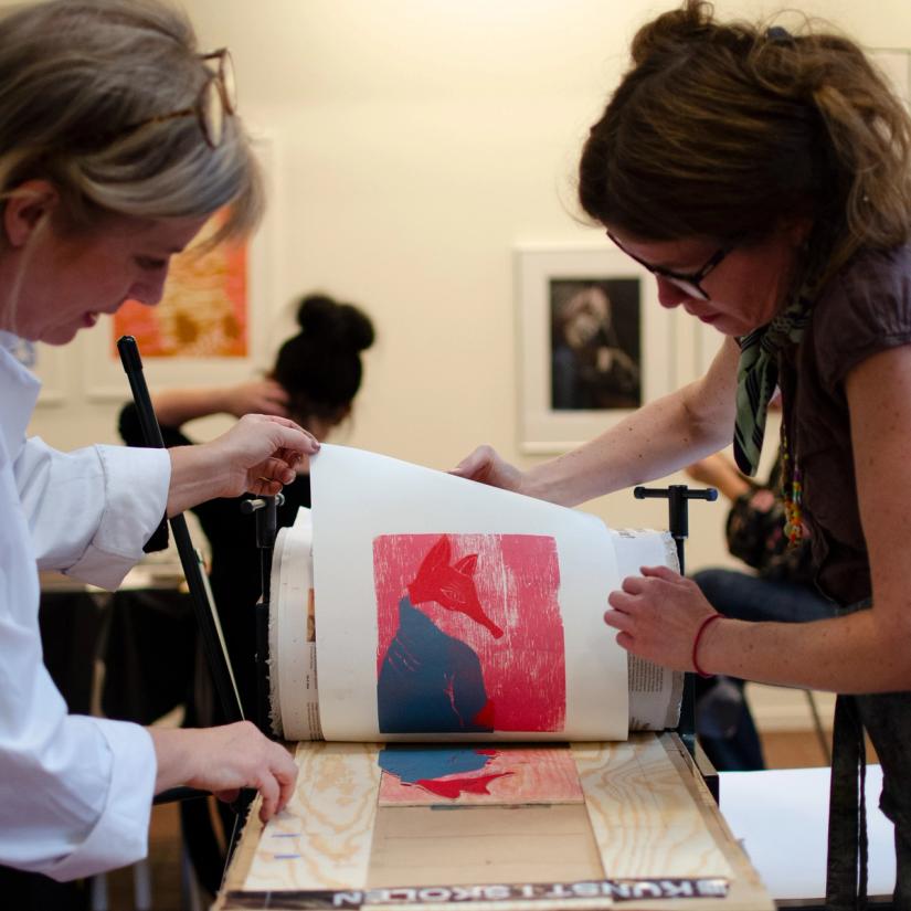 Deltagerne arbeidet blant annet med puslespillteknikk. Edvard Munch lagde fargetresnitt på denne måten - ved å skjære opp motivet og trykkplata i grove biter, valse delene i forskjellige farger og sette bitene sammen til et puslespill før han trykket bildet.