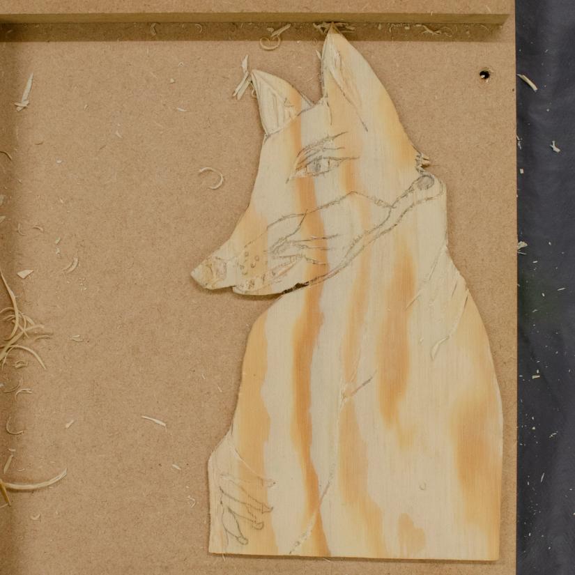Deltagerne benyttet finerplater. Det er viktig å alltid skjære fra seg. Knivene er formet som en U eller en V i ulike variasjoner og formen på kniven avgjør formen på streken som skjæres. For å fjerne store felt anbefales et stort U-jern.