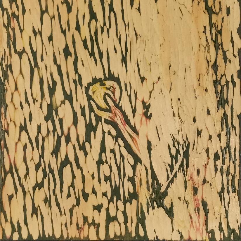 Fargen er valset på trykkplaten og ligger på platens høyeste punkter. Alt som skal være hvitt, skjæres bort med kniv eller huljern. Viktig å alltid skjære i fra seg og bruke et skjærebrett.